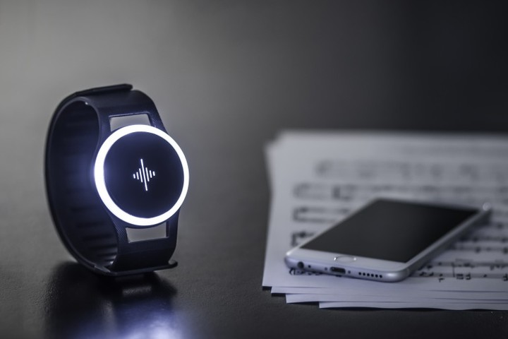 尽管有人搞定了电子节拍器,这台乐手必备的小工具依然有着不可抗拒的弊端。滴答声往往是一种干扰,所以,节拍器只适合在练习中使用,而难登舞台。德国的一群摇滚青年开发了 Soundbrenner,这是一部穿戴在身体上的智能节拍器,用振动和灯光,代替传统节拍器的滴答声。
