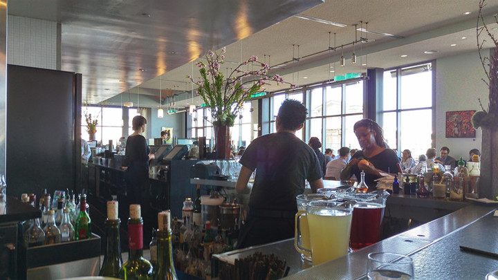这组场景中,S6 的表现最让人失望,虽然其窗外的场景表现得很好,人们甚至能够透过窗户看到室外的建筑,但室内的场景太过黑暗,甚至拍摄者在多次调整测光点也未能改善这一局面。M9 的表现比 S6 更好,虽然窗外的明亮处仍然出现了过曝的问题,不过室内的亮度也很高,足够让人看清室内的场景;表现最好的还是 iPhone 室内的暗处和窗外的亮处表现都不错。