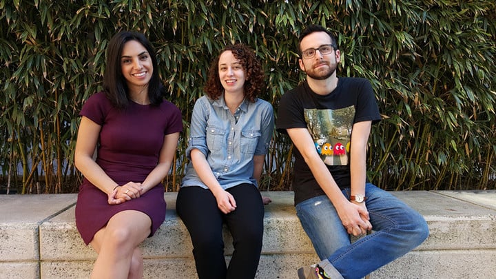 请注意墙上的紫色,S6 的紫色明显比另外两款的紫色更加深沉,比较讨喜。再注意中间那位女士的黑裤子和最右小伙的黑色 T 裇 ,S6 对黑色的表现细节相比另外两款机型有一定程度上的丢失。三者中,iPhone 6 对人像肤色的表现最好。