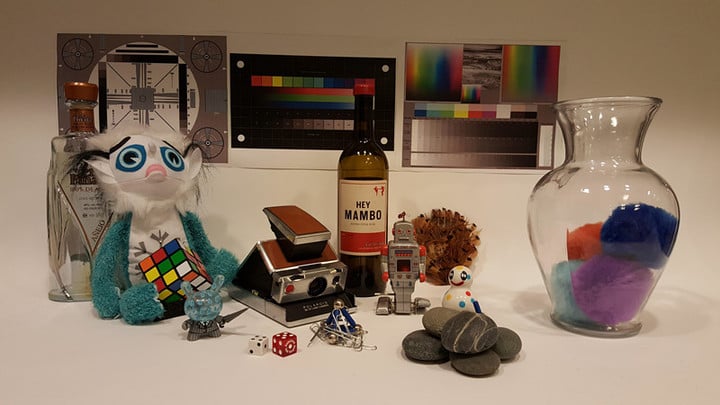 S6 的白平衡出现偏黄的倾向,尤其是中心部分。在背后的黑到灰的过度色板上,其界线也不像另外两者好分辨。iPhone 6 再次展现了其精准的白平衡。M9 的白平衡也不赖。