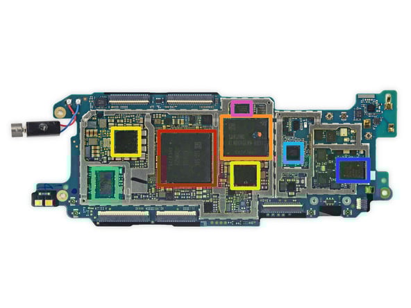 红色:三星 K3RG3G30MM-MGCH 3GB LPDDR4 和一起封装的高通骁龙 810 处理器
