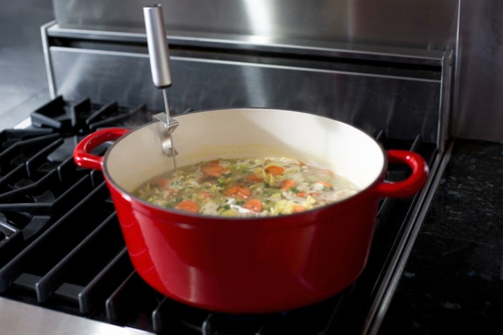 将打火灶的其中一个按钮替换成 Meld Knob,烹饪食物时再将 Meld Clip 插入锅内,Meld Knob 就能根据监测到的温度自动调节火的大小,以提供最合适的烹饪温度。