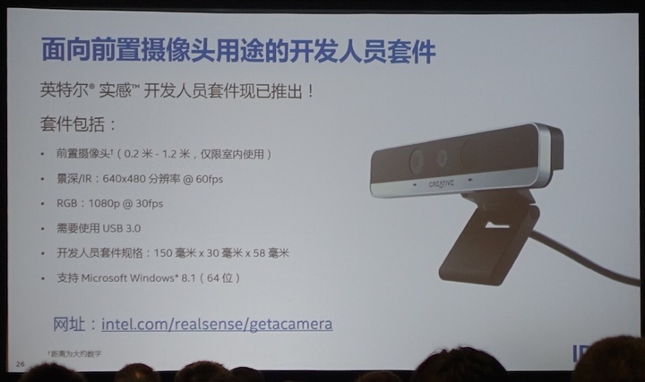 - 从硬件部分,它是支持英特尔实感计算的 3D 摄像头;