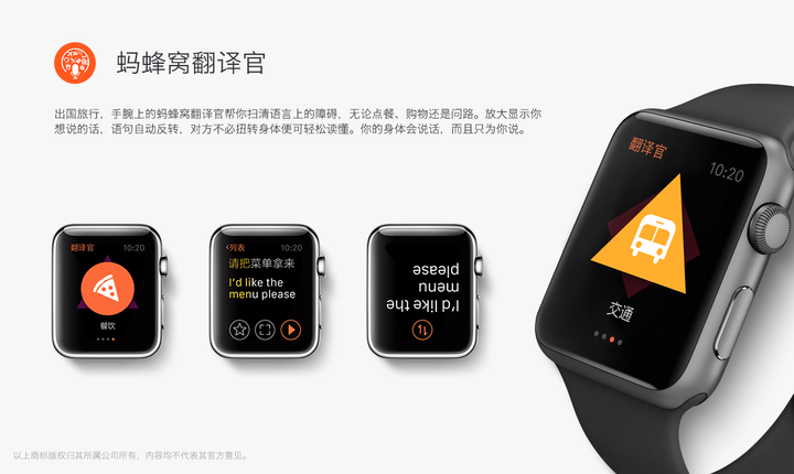 我们一定要经常问自己一个问题:如果这个应用在手机上可以做得更好,为什么还要把它搬到手表上?如果你无法回答这个问题,用户可能根本就不需要这个应用。当手机的使用场景被描述为碎片化,那手表一定是极度碎片化,并会侵蚀一部分使用手机的时间。而手表上的应用之所以存在,一是充分利用手表比手机所具有的天然优势,二是未来将极大改变人们使用设备的行为。所有这些,都以使用场景为支撑。