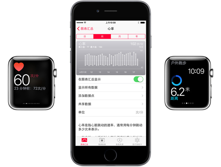 监测心率只是测量和计算运动量的一个手段,Apple Watch 还会结合加速度计、GPS 等其他传感器来计算运动和锻炼情况。