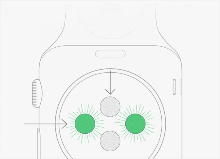 上面讲到的利用绿光 LED 的光体积描记器测量心率更像是一种备选方案,因为在十分钟测量一次心率的周期里,Apple Watch 利用的是红外线。但在“红外线测量无法读取足够的数据时,Apple Watch 会切换至绿色 LED。”