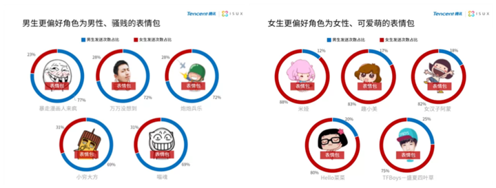 - 男性喜欢使用“骚贱”的表情;女性喜欢使用“可爱萌”的表情。