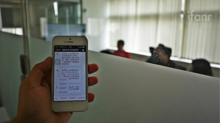 我们在艾拉公司,也亲自体验了艾拉云服务,利用微信控制会议室,包括门锁、灯光、投影仪、空调等,通过手机轻松实现。