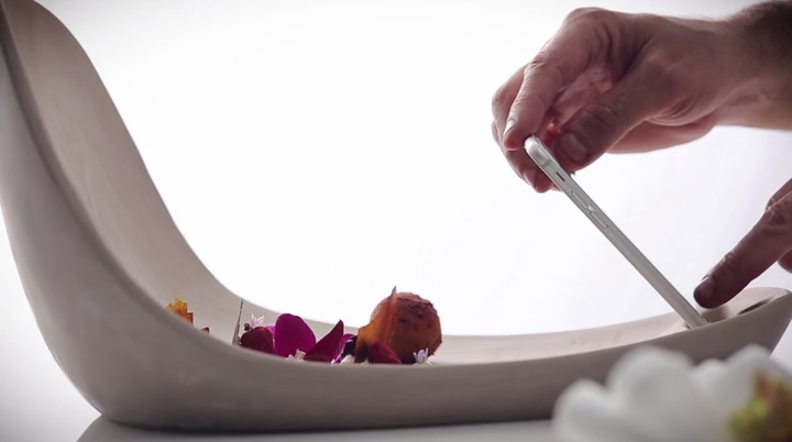 虽然那阵吃饭前必须先拿手机“验毒”的风气已过,现在仍有人执着于饭前拍照。为了让你拍得畅快或者避免再把手机掉进火锅里,以色列一家叫做 Catit 的餐厅专门推出一些方便用户拍照的餐具,在呈现食物的同时,方便食客们拍照。