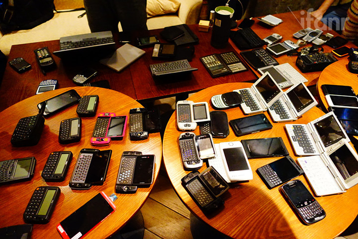 晚上 7 点半,各位发烧友从各个地方陆续赶到了爱范儿咖啡馆。活动正式开始以后, 各位发烧友都把自己珍藏多年的经典设备甚至孤品拿出来放到了咖啡馆的桌子上。设备相当多,足足铺满了五张桌子。看到这么多的设备,众发烧友都双眼放光,纷纷上手把玩,细细揣摩各个设备的精妙之处。