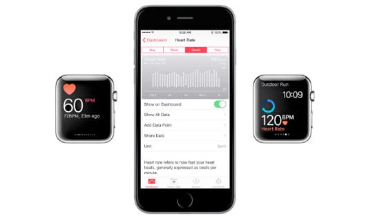 2 健康生活类: Helthkit 通过光电测量法监测流经用户手腕的血液周期变化。再把这些光信号转化成电信号,这样 Apple Watch 就可以计算出用户的心率数据。