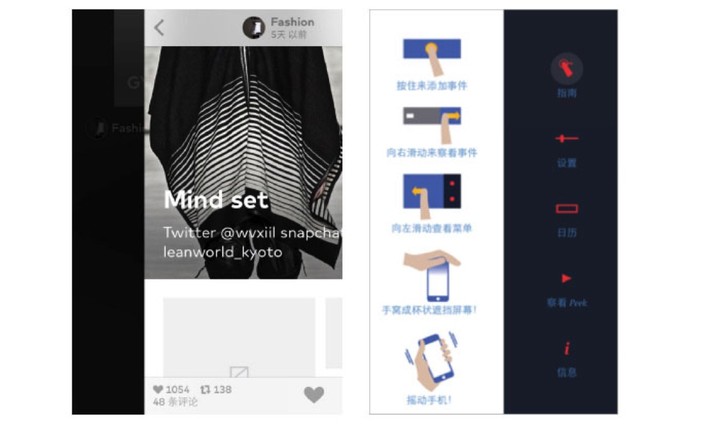 以 iOS 用户为例,常规返回按键多设定在屏幕左上角,对于大屏用户来说是不易触及的点击盲区。而 Storehouse 配合手势操作辅助,右滑退出界面,带来了极大便利性,滑动代替点击退出的用户习惯也逐步养成。PEEK 是一个以手势为主导的应用,通过手势变化进行相应操作,大胆的舍弃了功能按键。