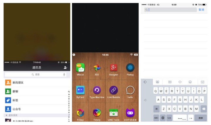 由于单手操作需求的普遍性,无论是客户端产品还是系统平台都做出了相应适应单手操作的解决方案。用户在特定场景下通过简易触发方式进入单手模式,缩小操控范围,将其控制在页面中下部手指易于触及的区域。iOS 系统双击 Home 键以及锤子的下拉悬停,都是在系统层级的交互解决方案。产品层级中百度输入法创新设计了可自主调节位置和大小的输入面板,得到了很好的用户反馈。