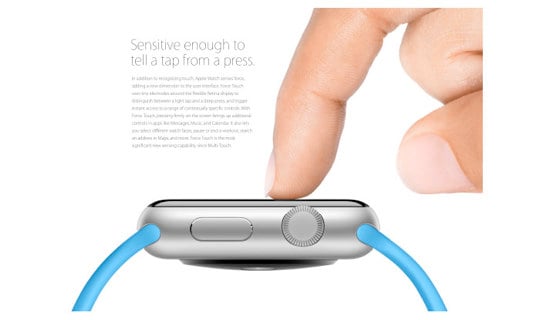 1. 2014 年 9 月发布的 Apple Watch,增加了全新的压力感应屏幕。将 “点击” 这个动作增加了一个维度:可以识别 “重击” 和 “轻击” 的区别。如果这种创新的操作能够成功,会将交互动作体系向前迈进一大步。