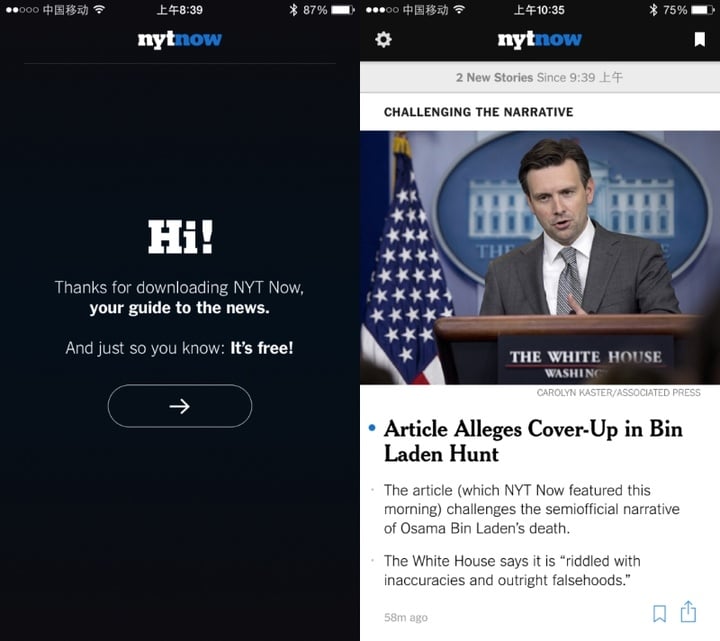 这一次,《纽约时报》移动版做了两个很重大的改变: