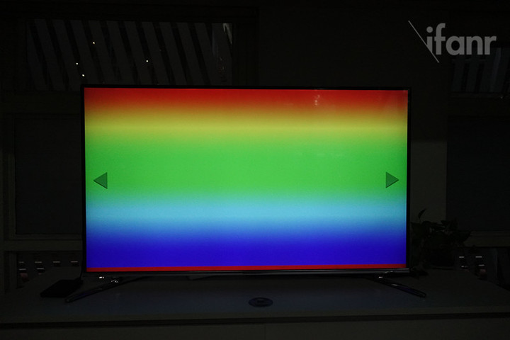 第一眼的观感是比较浓墨重彩的,讨好眼睛。通过常见的“红、绿、蓝”三原色纯色图来看,电视的调色方向确实偏向高饱和度。得益于“白色”子像素的加入,电视的白色图显示亮度很高,而同样也是因为“白色”字像素的加入,电视在显示黑色时,会有有一定的漏光现象,在可接受范围内,应该说是有得有失吧。