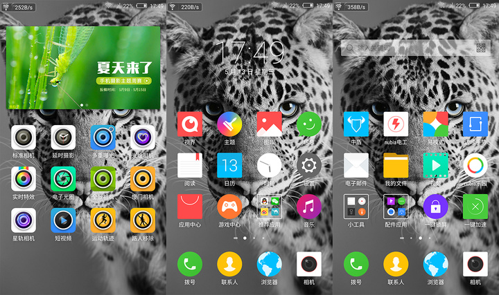 在系统上,nubia Z9 搭载的是基于 Android 5.02 定制的 nubia UI 3.0,扁平化的 UI 设计,比之前的版本更加耐看一些。系统自带应用的图标形状是圆形和方形兼而有之,同时也对一些常见的图标进行了重绘。这次它并没有盲目地像 iOS 看齐。