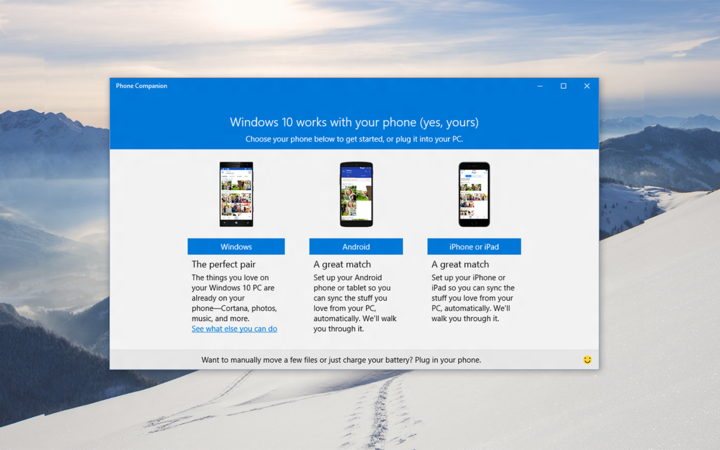 今天,Windows 10 的另外一项杀手级功能浮出水面——超级手机助手,无论你是 iOS,还是 Android,都可以和 PC 进行同步,运行 Windows 10 Mobile 的手机就更不必说了。微软在官方刊出了这款手机助手(Phone Companion)的详细信息,以及在连接不同平台手机时的具体操作方式。
