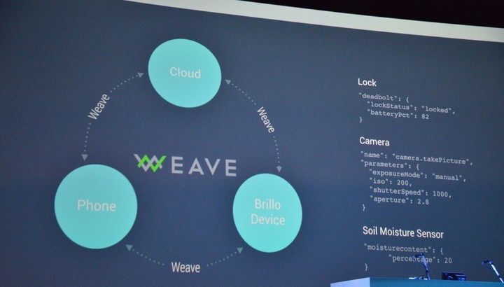 与此同时,Google 还发布了新的通讯语言 Weave。Weave 能让物联网中的设备相互之间通讯,具有跨平台、支持开发者 API 等特性。理想的应用场景是,用户锁门的时候家中的灯泡、空调等设备会自动感知,自己关闭掉电源。