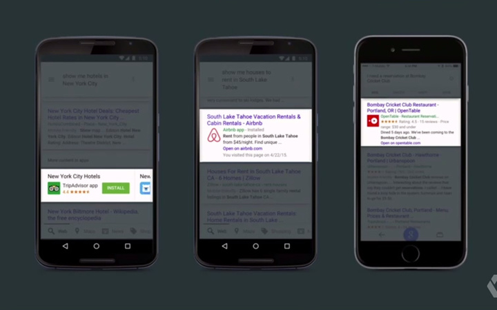同时,开发者可以为自己开发的 app 内容添加索引,以方便搜索。这也是 Android 在今后将要发展的一项核心功能,它的意义不仅仅是在于语音搜索、Google Now,还能够逐渐打破 app 之间的信息孤岛,让智能手机的体验更加流畅无阻滞。对于开发者来说,另外一个好消息是 Google 会在搜索结果中添加应用信息,提升 app 的下载和安装量。