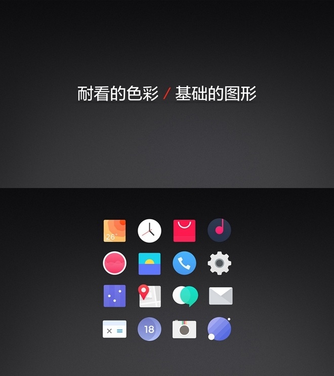 “氢表达”在配色上选取了接近自然的 8 种颜色作为氢 OS 主色调,图标设计方面则以圆形、方形、三角形这三种最基础的几何图形为主。基于上述原则,氢 OS 内置的 16 个 apps 呈现出极简的线条和色彩。而其时钟界面的圆形表盘与黑白两色,联系人界面的字母符号设计也都遵循了在基础色和基础图形框架下进行变换。