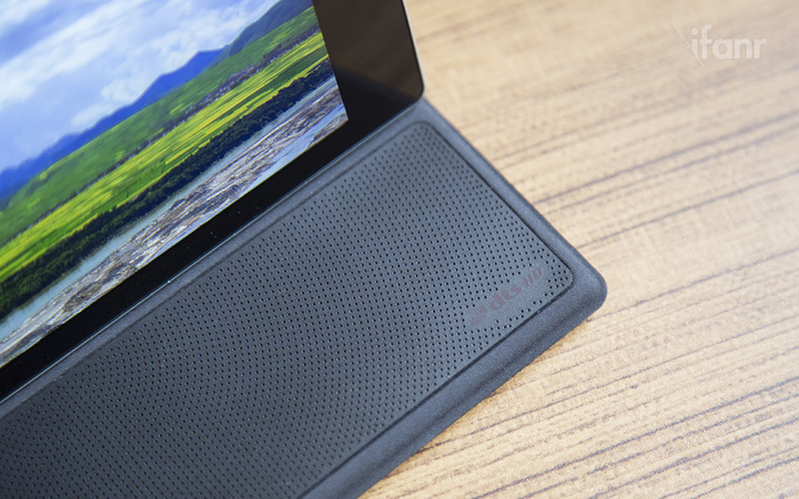 ZenPad 平板电脑除了可以更换不同颜色不同材质的外壳之外,华硕还推出了一款内置 6 颗喇叭、支持 5.1 声道 DTS 音效的外壳——Audio Cover。体验区里,在嘈杂的现场环境中,它的声音还依旧保持了不错的清晰度。