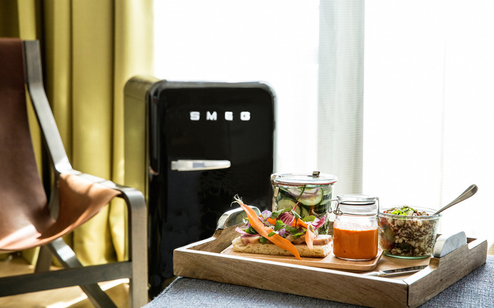 以上是这家酒店在鼓励你“迈开腿”,同时,它也在强制你“管住嘴”。酒店内的餐厅 Lure + Till 提供了更健康的菜单,比如胡萝卜沙拉和绿色谷物这些,以取代之前高盐高油高胆固醇的鹅肝培根。房间内的迷你吧也将鸡尾酒、喜力啤酒、薯片这些换成了草莓和大麦叶汁等健康食品。