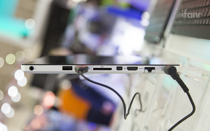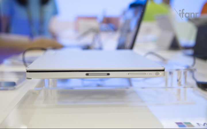 虽然在不配备键盘时,VAIO Z Canvas 更像是一款平板电脑,不过它的内在实在不容小觑,第四代英特尔 Core i7-4770HQ 处理器,非低电压版,更不是 Core M;GPU 则是 Iri Pro 5200。了解了这些参数之后,你就知道这款设备十足一个性能怪兽,也便对它的机身厚度,以及顶部密密麻麻的散热孔有了更多的宽容。现场机型的配置: