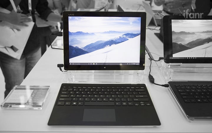 现场的 VAIO Z Canvas 安装的是预览版的 Windows 10,简短的体验中,程序切换、分屏都十分顺畅,以它的配置来看出现卡顿倒是不正常了。