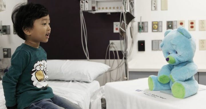 Huggable 是 MIT 媒体实验室研发的伴侣机器熊,在陪小病患聊天的同时,Huggable 还能追踪他们每天的心情变化和各种表现,以便医生在了解病患身体状况的同时关注到他们的心理反应。