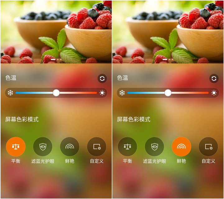 屏幕显示模式有平衡、护眼和鲜艳模式,更细致地还有自定义模式,用户可以选择自己想要的效果,三星式的浓郁,或者苹果式的本真都可以调试。不过这块屏幕仍有一个历史遗留问题,跟上代 Zenfone 一样,Zenfone 2 的屏幕亮度仍然不够高,日常使用没什么问题,不过需要用到高亮度的时候,比如夏天室外阳光下,屏幕视觉效果就打折扣了。