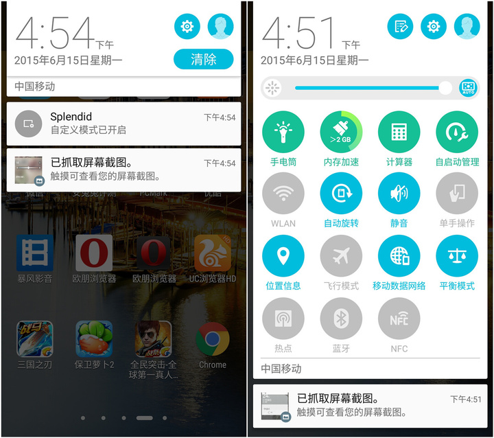 相比于国内的 MIUI、Flyme、Emotion UI 等等国产 Android ROM,Zenfone 2 采用的 Zen UI 提供的体验和逻辑其实更接近 Android 原生。前面说到的三个功能键的布局和 Android 原生一样,这只是一个小方面。