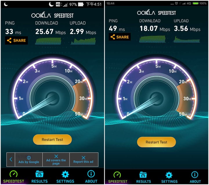 数据这时候往往比较能说明问题,在同一张电话卡,同一地点,同一时段下,这里用 Zenfone 2 和小米 Note 顶配版进行移动 4G 网络测速,其中小米 Note 顶配测速一次,结果为下行 18.07 Mbps,上行 3.56 Mbps。Zenfone 2 测速四次,结果为下行 14 Mbps 到 25 Mbps 之间,上行稳定在 3 Mbps 左右。虽然样本容量不大,而且网速容易受到其他因素影响,即使同一时段也有出入,不过可以看到使用英特尔基带的 Zenfone 2 和使用高通基带的小米 Note 顶配版之间并没有太大差别。