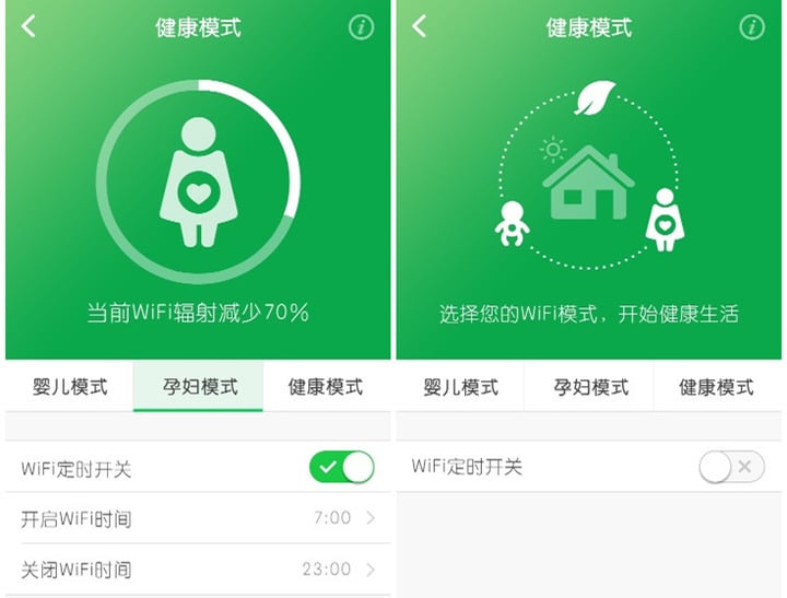 不过 360 偏不,在发布路由器产品的时候,重点讲了一个路由器的“孕妇模式”,简言之,就是“能通过信号调节,减少路由器对家人的辐射,为家里的特殊人群提供特殊的照顾”。