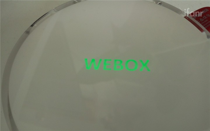 在接上电源以后,盒子顶端的 “WEBOX” 商标后透出幽幽的绿色,显得灵动了一点。