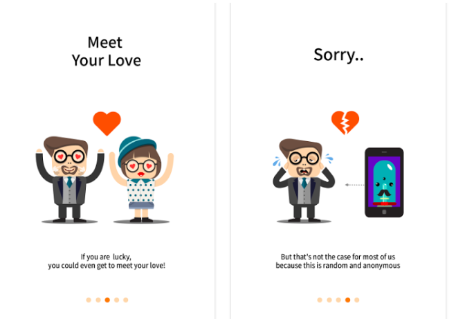 这个应用采用了前两年非常流行的随机配对聊天模式。