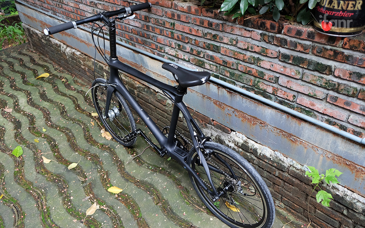 这辆自行车本身也很有属于这个互联网时代的特色:在 Pozible 上众筹,号称是智能自行车。但我觉得它吸引大多数人的并不是这个名号,而是它的外形。这绝对是它的一大亮点,我在朋友圈发过这辆单车的照片,朋友对其的评价全部都是正面的。我们收到的是黑色的版本,车身采用哑光处理,配上黑色的轮胎和把横,看上去非常酷。