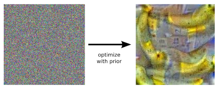 比如你想知道输入怎样的图片会让 AI 认为是“香蕉”,可以从一张满是噪点的图片开始,然后慢慢调整,直到它输出你想让它识别的事物。