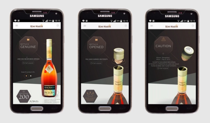 这款联网酒瓶由法国人头马公司与科技公司 Selinko 联合推出,酒瓶的酒盖植入了 NFC 芯片,打开相应 App,将手机靠近酒盖, App 就能立刻识别出这瓶酒是否为真品或是否被开启过。同时,用户还能因此获得与这瓶酒相关的背景知识以及人头马公司的活动、广告等。