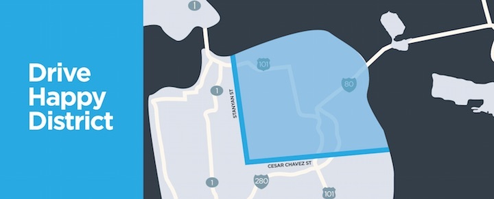 Lyft 从今年一月开始,在旧金山市从 Cesar Chavez 路到 Stanyan 路之间的区域内设置了 “快乐驾驶区” (Drive Happy District,DHD)。只要在这个区域内召车,目的地也在区域内,车费 5 美元封顶。