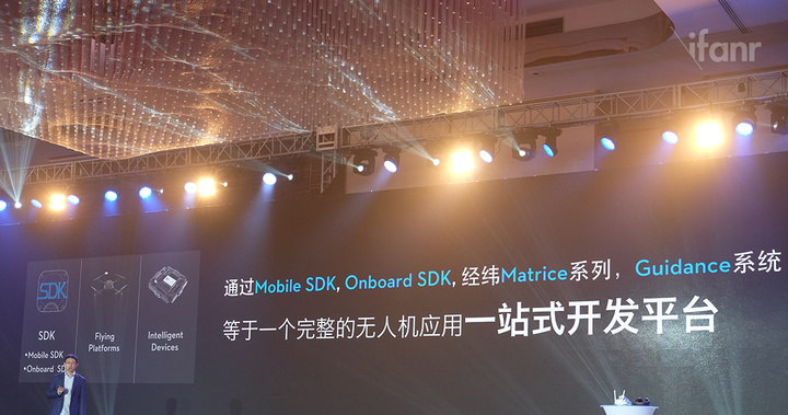 潘农菲认为无人机未来还有联网和集群的趋势。他提到大疆的无人机由软件、硬件以及传感器构成的开放平台,其中软件是由 Mobile SDK 和 OnBoard SDK 组成,其中 Mobile SDK让移动互联网的开发者开发出和手机端和无人机结合的 App,而 OnBoard SDK 则可以让开发者开发出定制化的无人机。潘农菲认为,大疆目前做的事情就像华为一样在做互联网的基础建设,而就像移动互联网上诞生了微信这样成功的平台一样,他也期待能看到无人机领域的张小龙。