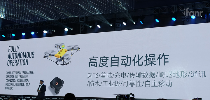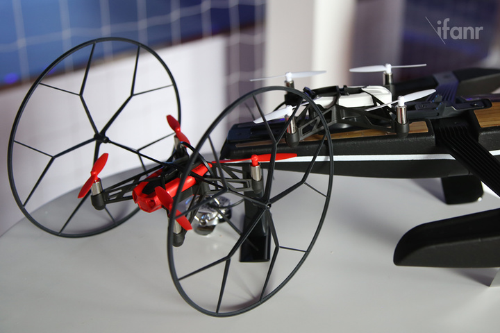 来自法国著名无人机生产商 Parrot 则要将无人机变得更有趣。他们的 CEO Nicolas Halftermeyer 上台介绍了被他称为“孩子们的玩具”的 Minidrones 系列无人机。其中包含能在地上跑也能在天上飞的 Rolling Spider 无人机以及会自动跳跃的 Jumping Sumo 等,他们的特点是重量非常轻,只有 500 克。他们还拍了一部在屋子里进行无人机大战的小电影,非常有趣。