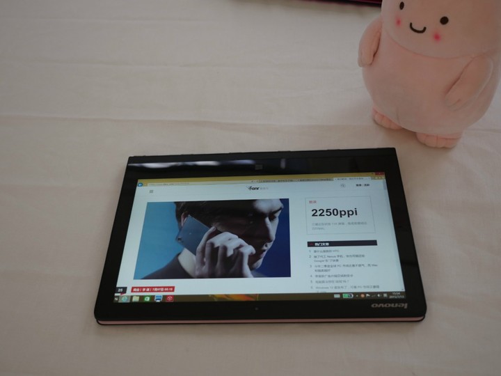 如果可以做到轻薄,笔记本不一定只有打开和合上两种状态。Yoga 3 Pro 除了传统笔记本用法之外还追加了两种不同的形态。首先它够薄,只有 12.8 毫米,比一些手机还要薄,也不重,单手握住无压力。它之所以形态多样,是因为它采用了和笔记本屏幕长度相同的单表链转轴链,通过 6 个链接点和屏幕相连。能让电脑屏幕与键盘之间形成任意角度支持。于是它可以在笔记本模式、平板模式以及帐篷模式中进行切换。