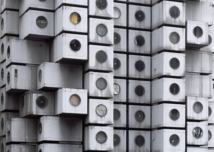 早在 1972 年间日本曾修建一座“中银胶囊大楼”(Nakagin Capsule Tower),专为无法赶上末班车回家的上班族设计。中银胶囊大楼是日本设计师黑川纪章的成名之作,这座大楼也是他信奉的新陈代谢主义