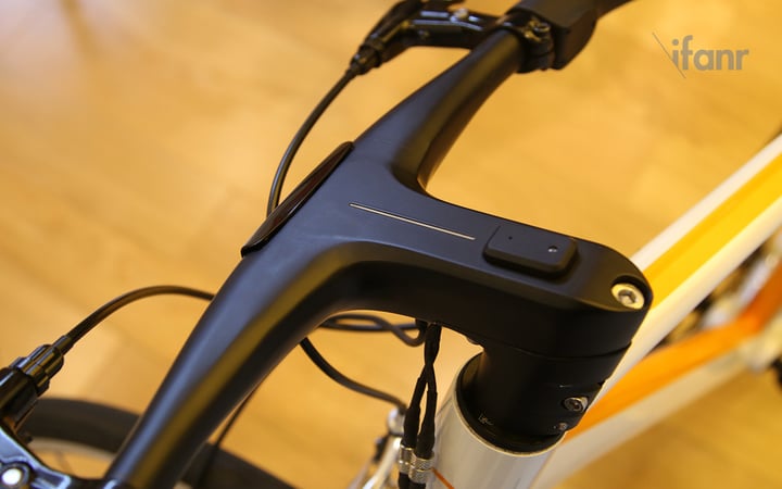 曲奇单车内置了高通骁龙系列的处理,作为单车的大脑。它还内置光纤传感器,可以自动调整前灯和尾灯的亮度,另外还有 GPS 用于定位和防盗,并且配备了激光骑行道,辅助夜间的骑行。另外对于智能硬件产品绕不开的续航问题,吴俊斌告诉爱范儿,曲奇单车内置的电池容量为 10000mAh,续航时间在一周左右。