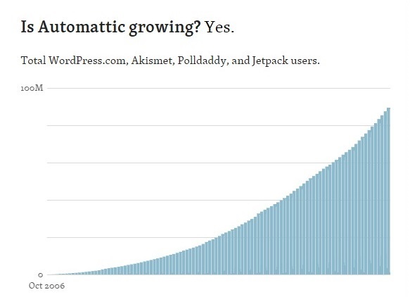另一个成功案例就是 Automattic ,拥有 385 名来自 36 个国家的员工。公司近几年发展态势堪称迅猛,目前的每月浏览量有 1.31 亿次,估值飙涨至 10 亿美元,业务的触角也随之延伸到了互联网的各个角落。你正在看着的这篇文字就运行在 Automattic 的 WordPress 上。