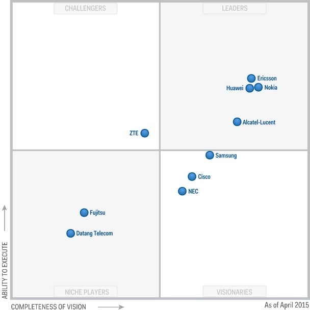华为在通信技术的实力上有目共睹。Gartner 评估全球各运营商在 LTE 基础设施的实力时,将华为放在了领导者的区域。