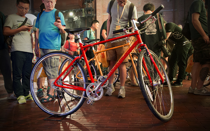 夜晚的 77 文化创意园,被装扮成了一场关于自行车和自行车文化的夜宴,人头攒动,情怀满满。2014 年 10 月 20 日,酷爱骑行的张向东在微博发出《我不想白白爱过自行车》的离职信,离开他一手创办的久邦数码(产品包括 Android Go 桌面),并在同年 11 月 19 日加入自行车文化社区 700Bike,成为联合创始人并担任 CEO。10 个月之后,他带着四款车子归来——后街、美术馆、百花、银河。前两个名字和发布会的选址——美术馆后街 77 号相呼应,而“百花”则取自 700Bike 旧址的名称“百花深处”。