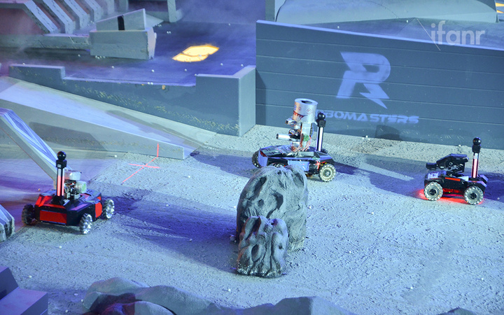 现场的工作人员告诉我,大赛选择战车作为切入点,是因为战车与大疆擅长的无人机技术有不少的共通性,不过因为不需要涉及飞行相关的知识和原理,所以也极大地降低了机器人的研发难度。毕竟作为大学生,能够在现有的基础上设计制造 4 台高质量的机器人,也绝非易事。如果选择无人机作为比赛机器人的形态,也会提高参赛的技术门槛,不利于在各高校中进行推广。