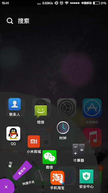 这是一款提升使用效率的 app,只要从屏幕的左右下角边缘往中间滑,就会出现一个扇形的快速启动界面,里面会显示最常用、最近使用的 app,还有快捷功能的开关——全部都在单手可接触的范围,有效解除双手使用手机的压力。